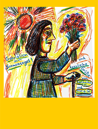 Nuria Quevedo gehörte zu der Künstlergeneration, welche die Gründung der Kinder- und Jugend- Kunst- Galerie „Sonnensegel“ beförderte und die Entwicklung der Kunstschule über Dekaden begleitete. Die bekannte spanisch-deutsche Malerin und Grafikerin spendete grafische Blätter für die Sammlung der Galerie Sonnensegel, stellte in der „Alten Lateinschule“ aus („Don Quijote“) und beteiligte sich an Projekten der „Sonnensegler“ (u.a. „Da fing ich an zu singen“ – eine Hommage für Christa Wolf). Insbesondere ihre kongenialen Illustrationen zu Franz Fühmanns Neuerzählung des „Prometheus“-Mythos gaben wertvolle Impulse für die bildnerische Arbeit mit Kindern und Jugendlichen in unserem Haus.