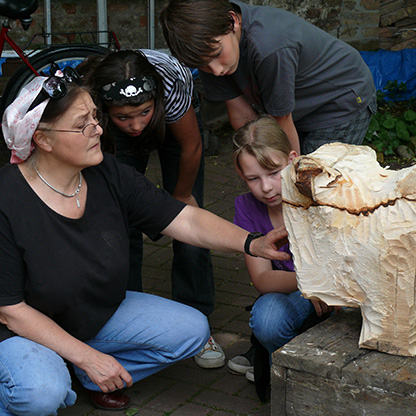 Hingewiesen sei auf eine weitere besondere Veranstaltung am Mittwoch, dem 23.06. 2010. An diesem Tag wird die Berliner Bildhauerin Anna Franziska Schwarzbach mit Kindern einen „Sündenbock“ schnitzen (15.00 Uhr) und am frühen Abend (17.30 Uhr) liest der Schriftsteller Jürgen Rennert für das junge Publikum. Beide Aktionen finden in der Kunstschule am Gotthardtkirchplatz statt.