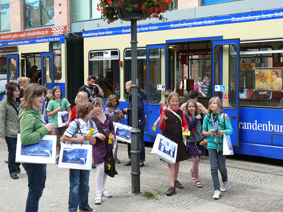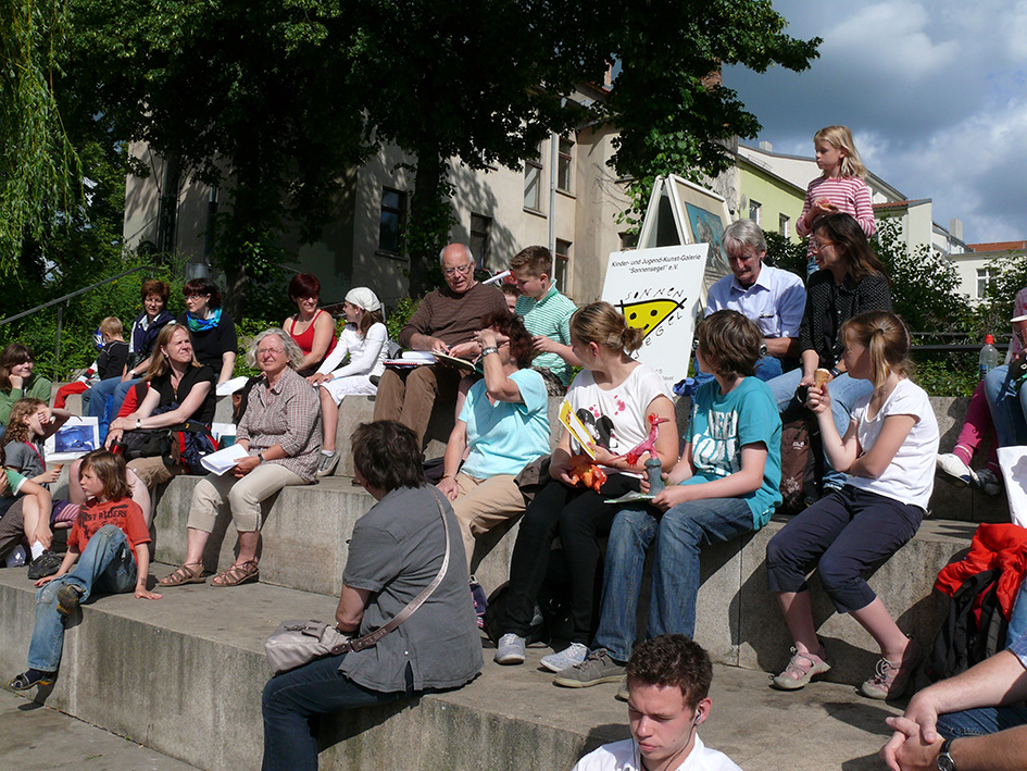 Damit möglichst viele Einwohner der Stadt von diesem Vorhaben erfahren, sind die Kurskinder der Galerie schon am Montag der Festwoche (21.06. 2010), ab 15.00 Uhr im Stadtzentrum unterwegs, um Passanten für das Sommerfest zu interessieren. In der Hauptstraße und als Mitfahrer in Straßenbahnen werden die Schüler Einladungen und kleine Geschenke verteilen. Um 17.00 Uhr treffen sich alle „Sonnensegler“ an der Jahrtausendbrücke, um eine kleine „Open Air“- Lesung selbstverfasster Texte durchzuführen.
