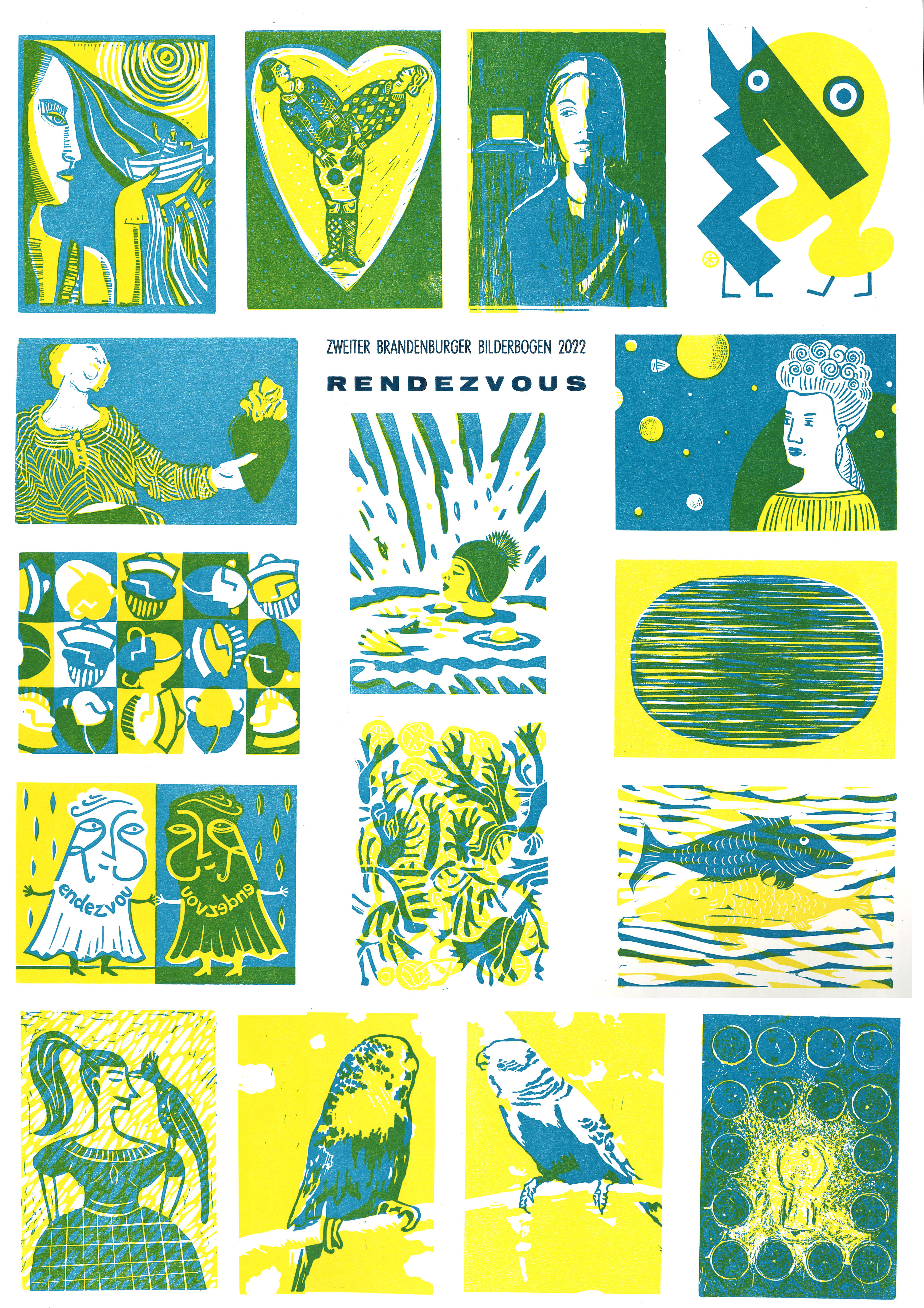 Deshalb haben sich die Kursleiter der Galerie „Sonnensegel“ erneut an befreundete Künstlerinnen und Künstler gewandt und diesmal um eine Illustration zum Thema „Rendezvous“ gebeten. Die sechzehn mehrfarbigen Originalgrafiken in Postkartenformat werden am Tage der Druckkunst 2022 zum zweiten „BRANDENBURGER BILDERBOGEN“ vereint. Das grafische „Rendezvous“ bzw. die Endfertigung des Kunst-Plakates findet am 15. März 2022, 14.00 Uhr, im DRUCKLADEN der Galerie „Sonnensegel“ statt. Besucher sind willkommen und können den Bilderbogen auch druckfrisch erwerben.
