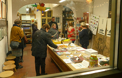 Und es gibt vieles zu entdecken: von der handgefertigten Weihnachtskarte bis hin zum limitierten Künstlerplakat reicht das Sortiment des vereinseigenen DRUCKLADENS. Fotoabzüge des Fotografen Gordon Welters in Poster-Format, der neue originalgrafische Kalender der Galerie, welcher in seiner diesjährigen Auflage einem berühmten Brandenburger „Geburtstagskind“ gewidmet ist sowie phantasievolle Kleinkeramik und andere handgemachte „Kleinigkeiten“ warten auf neue Besitzer.