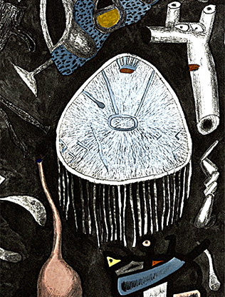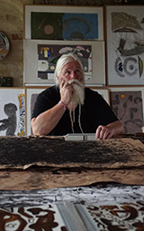 Mystisch und geheimnisvoll wirken die Malereien und Grafiken des in Leipzig geborenen Künstlers Frieder Heinze. Der Schüler von Bernhard Heisig und Werner Tübke, Mitinitiator und -gestalter des 1. Leipziger Herbstsalons (1984) kehrte sich schon früh von einer Darstellungsart ab, für die u.a. seine Lehrer exemplarische Gestaltungskonzeptionen entwickelten. Frieder Heinze verwarf die figürlich- illusionistische Malerei mit einem starken narrativen Bezug und entwickelte einen formel- und flächenhaften Malstil. Ornamenthafte Zeichen, kalligraphische Elemente, urtümliche Gestalten, auch Zitate mittelalterlicher religiöser Kunst verbreiten sich labyrinthartig über die Fläche, bevölkern in großer Dichte die gemalten bzw. gezeichneten Bildteppiche. Nicht von ungefähr wurde oft und richtig auf die Nähe der Bildsprache des Künstlers zu prähistorischen Darstellungen verwiesen. Frieder Heinze gefällt das Diktum von Picasso, der nach Besichtigung neu entdeckter Höhlenmalereien der Steinzeitmenschen mit Blick auf die eindrucksvollen Tierdarstellungen gesagt haben soll, dass die Künstler nichts dazugelernt hätten. Aber nicht nur Prähistorisches bzw. die sogenannte Kunst der Naturvölker bieten Inspirationsquellen. Die ausgestellten Lithografien, die in Teilen handkoloriert wurden, weisen auch deutliche Bezüge zu surrealistischen Strömungen auf. Der schier unerschöpfliche Erfindungsreichtum Frieder Heinzes schlägt eine Brücke von den phantastischen und seltsam verstörenden Figuren eines Hieronymus Bosch hin zu Bildschöpfungen von Klassikern der Moderne wie Paul Klee und Miró.