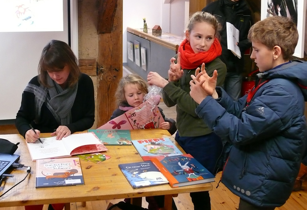 Zwei der Illustratorinnen, die mit Arbeiten in der Ausstellung vertreten sind, werden zu späteren Zeitpunkten ihre Bücher in der Galerie bzw. im Brandenburger Theater vorstellen sowie zu Signierstunden einladen.