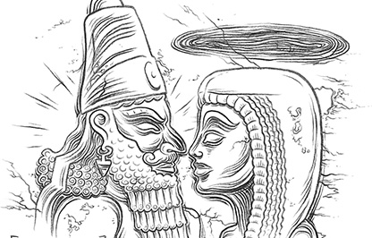 Auch wenn man mittlerweile weiß, dass der Comic bzw. die graphic novel ein Medium ist, dass so gut wie jedes Thema erzählen und vertiefen kann, erscheint das sein Vorhaben sehr ambitioniert. Nicht weniger als 14 Milliarden Evolutionsgeschichte, vom Urknall bis zur Gegenwart, inklusive eines Ausblicks auf die Zukunft des Menschen will er in vier Comic- Bänden darstellen. Zwei Alben sind schon erschienen („Alpha“ und „Beta I“) und es zeichnet sich ab, dass der Illustrator nach Fertigstellung des Projektes mehr als 1000 Seiten mit über 7000 Panels (Einzelzeichnungen) gefüllt haben wird. 2004 hat Jens Harder sein Magnum Opus begonnen, 2021 will er mit dieser Arbeit fertig sein, aber schon jetzt gibt es für das Brandenburger Publikum die Gelegenheit, die (fast) gesamte Geschichte der Welt mittels Originalzeichnungen aus den Bänden „Alpha“ und „Beta I“ zu erleben. Ergänzt wird die Bilderschau durch Zeichnungen aus zwei weiteren Veröffentlichungen des Berliner Künstlers. Zu sehen sind Bleistiftzeichnungen zum jüngst erschienenem „Gilgamesch“- Epos und Blätter aus dem Album „Leviathan“.