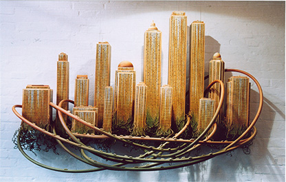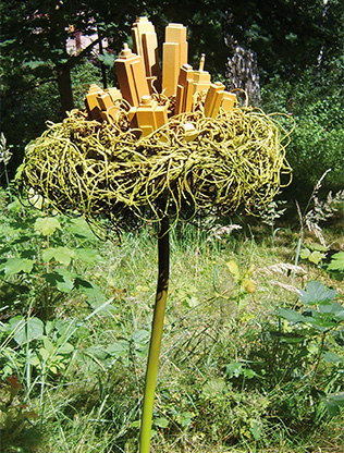 „Berlin. Halleluja Berlin. .... Alle wollen dahin. Deshalb will ich das auch.“, heißt es im Brandenburg- Lied des Kabarettisten Rainhald Grebe. In dem mittlerweile zur inoffiziellen Landeshymne aufgestiegenen musikalischen Stück wird der Gegensatz zwischen der hektischen Atmosphäre in der Bundeshauptstadt und der scheinbar verschlafenen, angeblich renaturalisierten Provinz beschworen. Dieser Dualismus ist auch Inspiration für den Künstler Uwe Tabatt. Berlin hat er nie aus den Augen verloren, auch wenn er seinen Wohn- und Arbeitssitz seit geraumer Zeit vom quirligen Stadtbezirk Kreuzberg in die eher beschauliche Gemeinde Glienicke/Nordbahn verlegt hat. Hier ist die Nähe zum Gegenpol des ständig wachsenden Molochs Großstadt schneller herstellbar, Natur direkter erlebbar. Aber Uwe Tabbat ist kein drohender Mahner, der natürliche und gebaute Umwelt des Menschen in sich ausschließender Gegensätzlichkeit zeigt. Vielmehr sind seine Gemälde und Installationen der nicht humorfreie Versuch, auf den ersten Blick Unvereinbares in einem neuartigen symbiotischen Miteinander zu zeigen. Die dargestellten Verschmelzungen von Objekten der Natur mit Alltagsgegenständen oder Architektur zu biomorphen Formen schärfen den Blick des Betrachters für seine Verantwortung im Wechselverhältnis Mensch und Umwelt. Dabei bedient sich Uwe Tabatt gekonnt verschiedener Stilmittel moderner Kunst. Elemente der Pop Art werden, genau wie surreale Einflüsse, in die Gegenwart übertragen, ausgediente Konsumgüter erhalten wie einst bei den Readymades oder in der Objektkunst eine zweite Chance als Teil eines Kunstwerkes. Die montierten Gebrauchsgegenstände sprengen die Zweidimensionalität des Malgrundes, werden zur Skulptur, die der Künstler „Urbanismen“ nennt. Aber auch ein Dschungel ganz anderer Art beschäftigt Uwe Tabatt. Das eigene Erleben eines Rechtsstreites war Motivation, Begrifflichkeiten und Rituale aus dem Bereich der Justiz zu hinterfragen und in hintersinnige Kausalitäten zu bringen. Inhaltlich liegen diese Arbeiten aus der „Law & Order“- Reihe dicht an einem dritten großen Themenkreis des Künstlers. Berliner Bär und Brandenburger Adler agieren in vielen bildlichen Darstellungen als Protagonisten ihrer Bundesländer bzw. als Versinnbildlichung der „Befindlichkeiten“ von Berlinern und Brandenburgern. Uwe Tabatt registriert sehr wohl, dass es Trennendes gibt, was für ihn aber durchaus eine Chance darstellt. Stärken und Schwächen der Verhältnisse in den beiden Regionen gleichen sich seiner Meinung nach aus und befördern letztendlich die Erkenntnis, dass die Länder zusammengehören, sich gegenseitig brauchen. Oder wie Rainhald Grebe in einem weiteren Text schrieb: