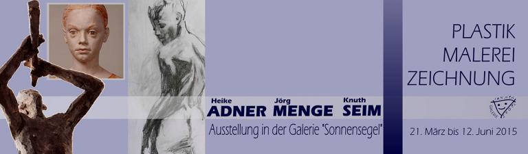 Heike Adner, Knuth Seim und Jörg Menge stehen mit ihren Arbeiten in der langen Traditionslinie einer realistischen Kunstsprache. Heike Adners Terrakotten, Darstellungen von Mädchen und jungen Frauen, vermitteln eine Stimmung, welche die ausgebildete Keramik- Designerin selbst als ein Wechselspiel zwischen äußerer Ruhe und innerer Bewegung, zwischen Verletzbarkeit und Stärke einschätzt. Sie formt einen zeitlosen Menschentyp und stellt sich damit bewusst in eine Traditionslinie, deren Wurzeln bis in vorchristliche Zeiten zurück zu verfolgen sind. Die Dargestellten verharren in einem Moment innerer Sammlung, erscheinen aber trotz der reduzierten Bewegtheit nicht passiv. Die Mimik und Haltung der sparsam bemalten Figuren mit ihrer rätselhaften Aura deuten Inhaltliches eher an, als dass sie dem Betrachter Gewissheit versprechen.