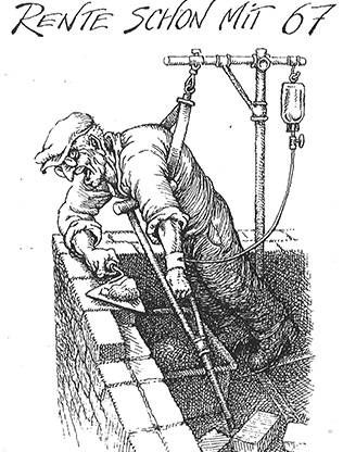 Viele alte und neue Zeichnungen konnten zu seinem 60.Geburtstag in der Ausstellung „Zweifeln immer. Rückwärts nimmer“ ausgestellt werden. Der Zuspruch ermuntert ihn, ein Buch im Eigenverlag herauszugeben. Seine Bilder tun weh, machen Spaß, sind intelligent, öffnen die Augen. Deshalb wird seine Gemeinde deutschlandweit wachsen.